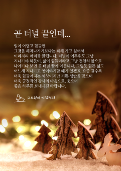 나아가다 보면 곧 터널 끝에 이릅니다. 그렇듯 힘든 삶도