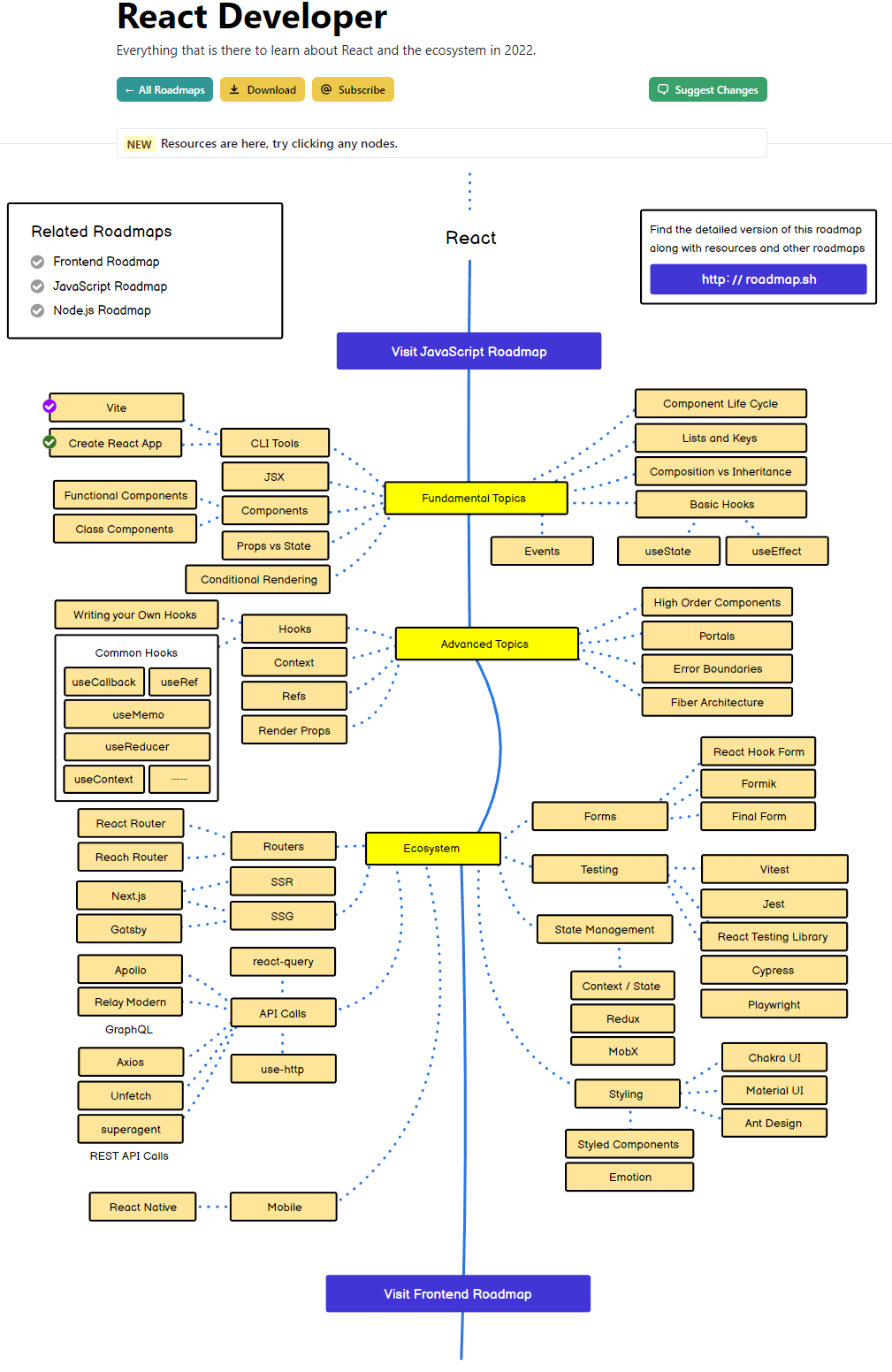 개발자 로드맵 - https://roadmap.sh/frontend react