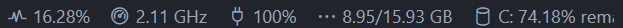 One of the latest extensions on the list is Resouce Monitor. There’s nothing so difficult in this extension. It just shows you some information about your system and usage. It can display CPU frequency, usage, memory consumption, and battery percentage remaining within the VSCode status bar.