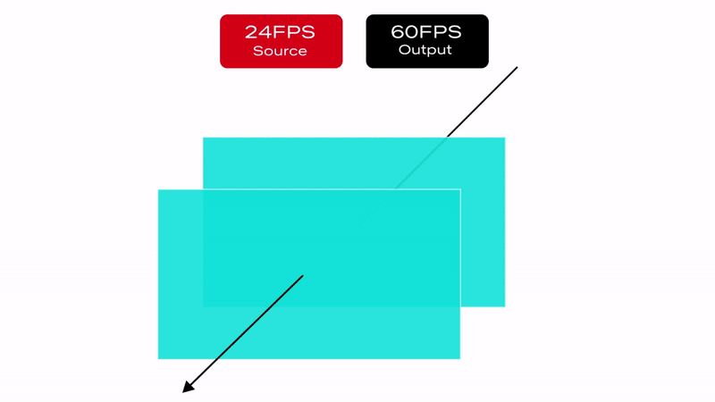 콘텐츠를 변환하고 HDMI를 통해 출력 프레임 속도로 전송하는 것은 논리적이고 간단하게 들립니다. 실제로 FRC는 출력 프레임 속도가 기본 프레임 속도의 정수배(예: 24→48, 25→50, 30→60, 24→120 등)일 때 잘 작동합니다. 반면에 FRC는 정수가 아닌 다중 변환이 필요한 경우(예: 24→60, 25→60 등) Judder 라는 시각적 아티팩트를 도입하며, 이는 아래 그림과 같이 고르지 못한 비디오 재생으로 나타납니다.