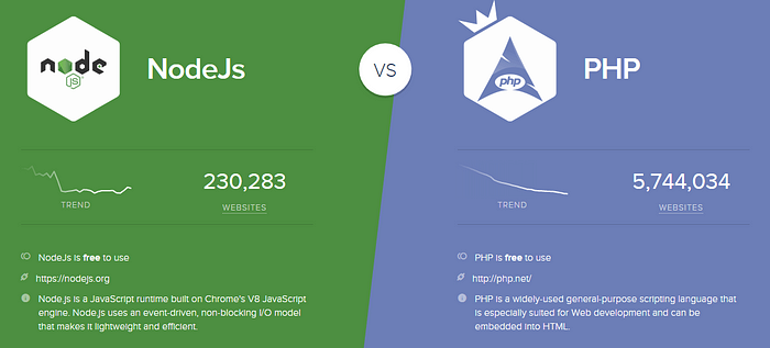NodeJs 대 PHP: 2023년 통계, 기능 및 성능 비교