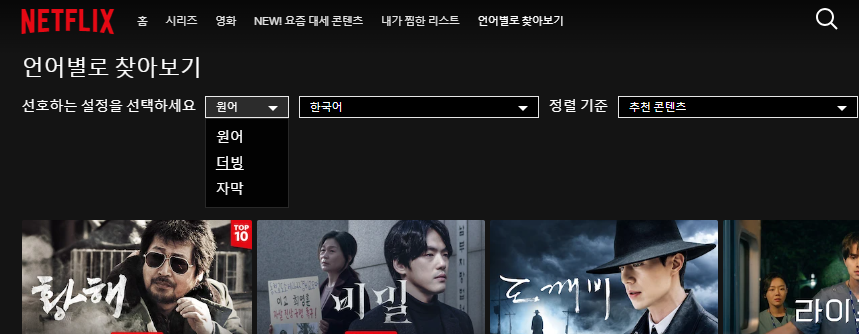 [넷플릭스] 한국어 더빙 영화, 시리즈 검색하기
