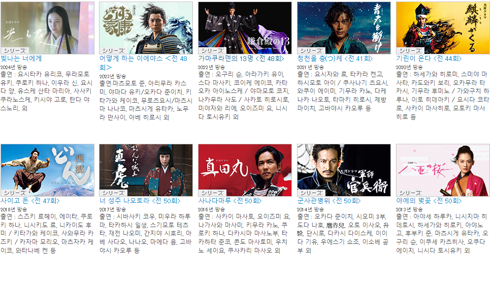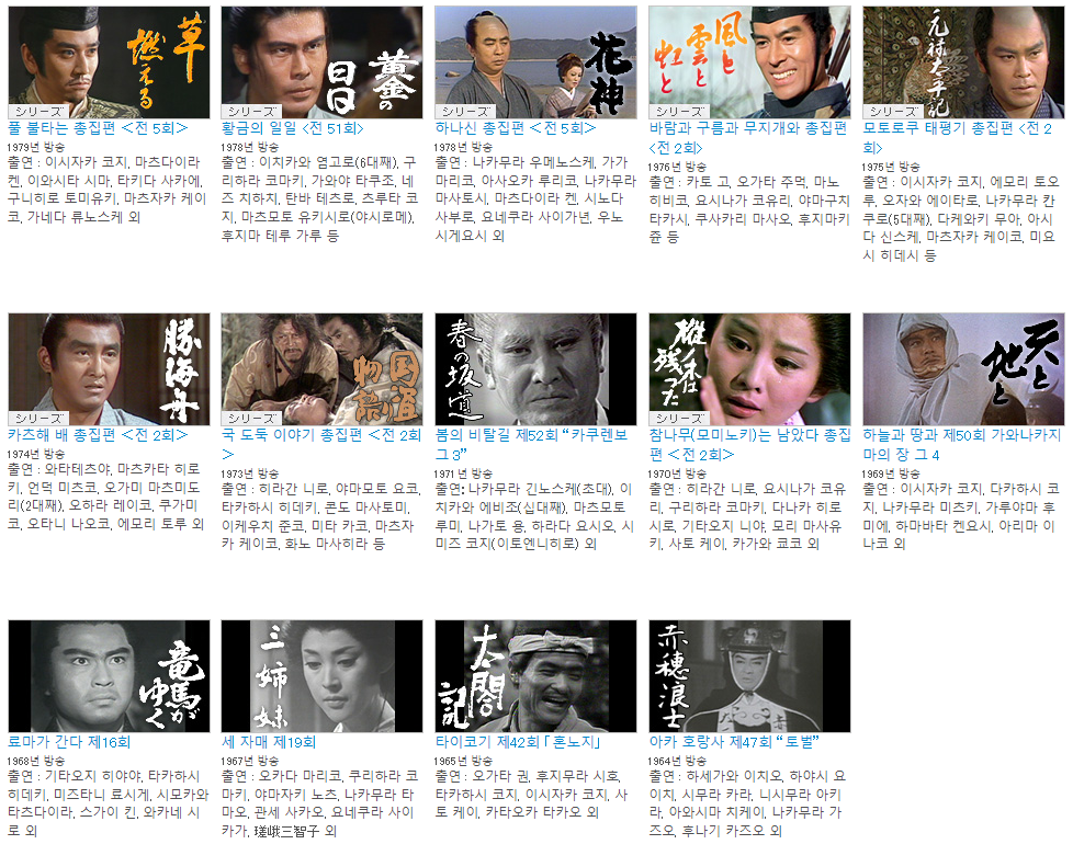 공식 홈 : https://www.nhk.or.jp/archives/bangumi/special/taiga/