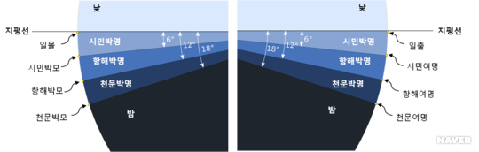 세 가지 박명(薄明)이란 시민박명, 항해박명, 천문박명을 일컫는다.