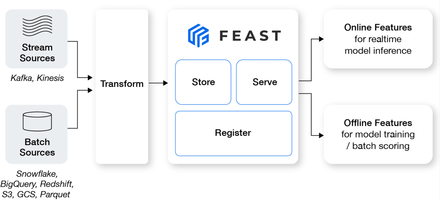 Feast is a feature store that bridges the gap between data and machine learning models. It provides a centralized repository for defining feature schemas, ensuring consistency across different teams and projects. This can ensure that the feature values used for model inference are consistent with the state of the feature at the time of the request, even for historical data.