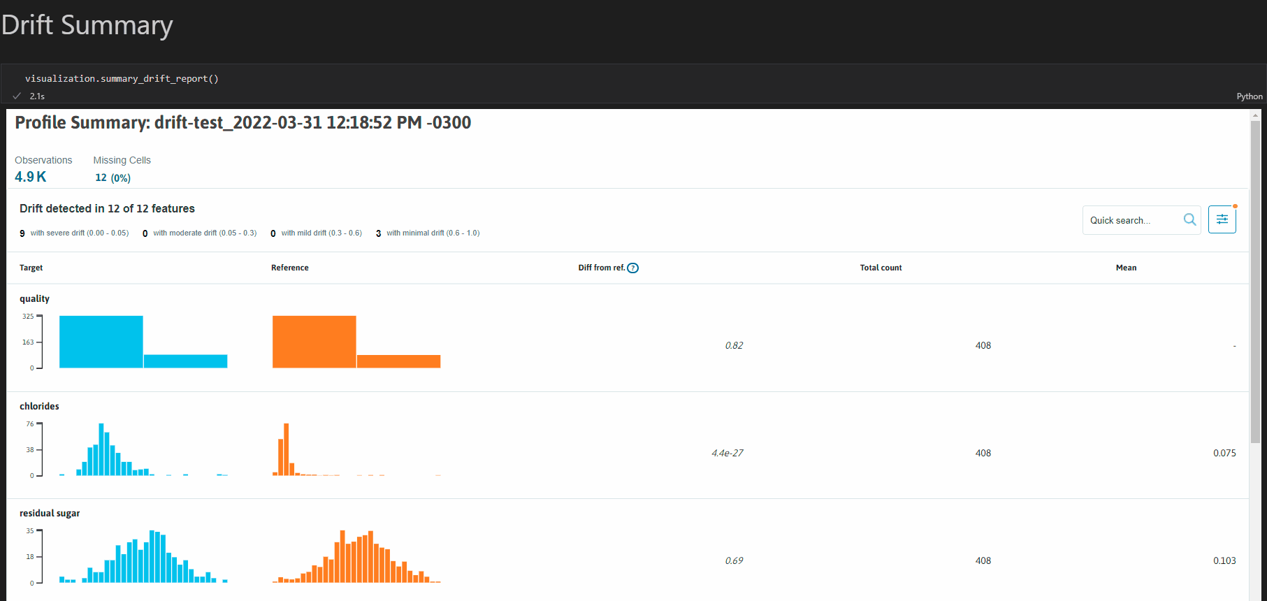 With WhyLogs, MLOps engineers can efficiently generate compact summaries of datasets (called profiles) that capture essential statistical properties and characteristics. These profiles track changes in datasets over time, helping detect data drift – a common cause of model performance degradation. It also provides tools for visualizing key summary statistics from dataset profiles, making it easy to understand data distributions and identify anomalies.