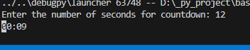 사용자가 초 단위로 시간을 입력하면 카운트다운을 실행하는 간단한 Python 프로그램입니다.