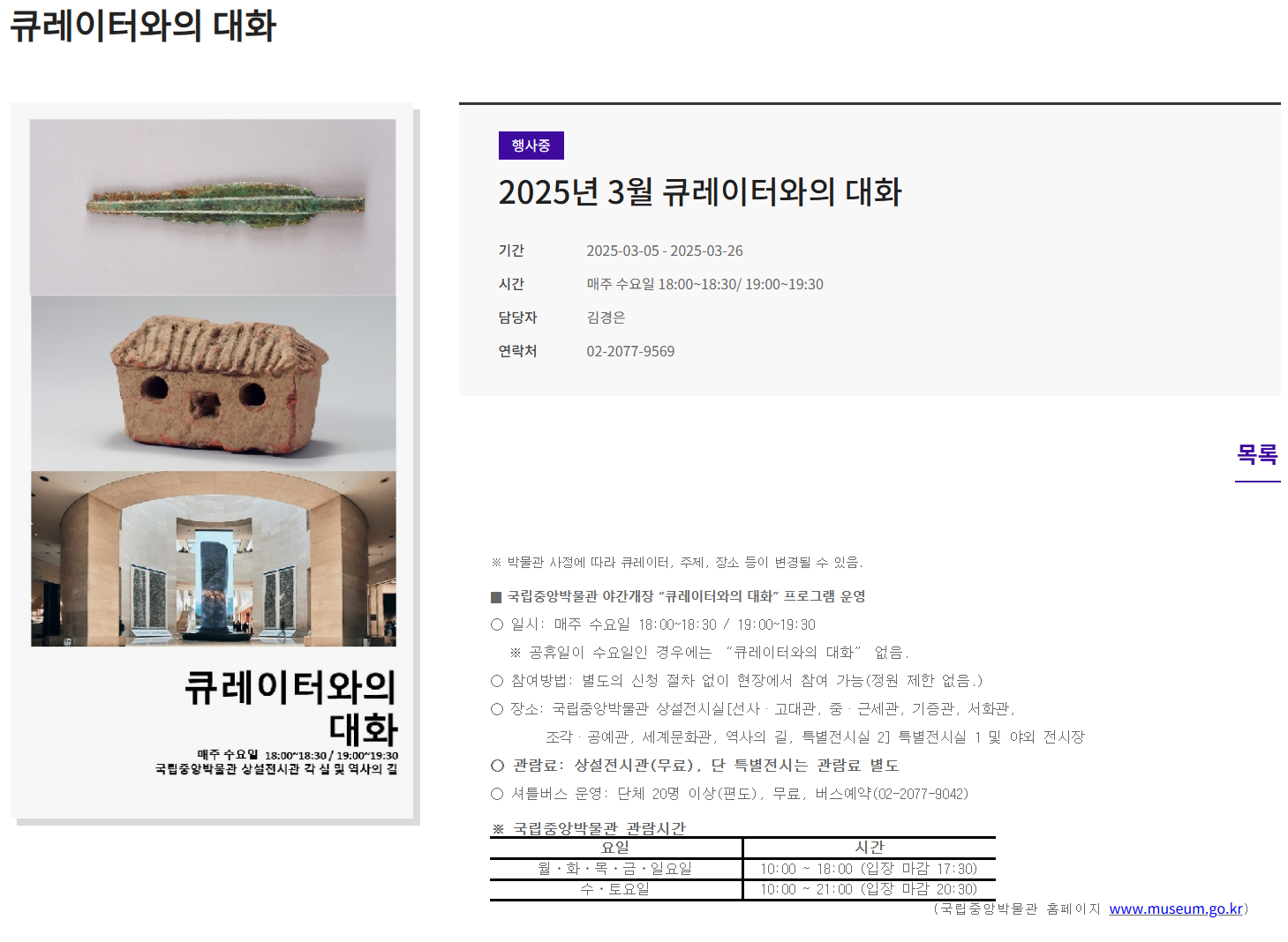 큐레이터와의 대화, 국립중앙박물관 2025년 3월