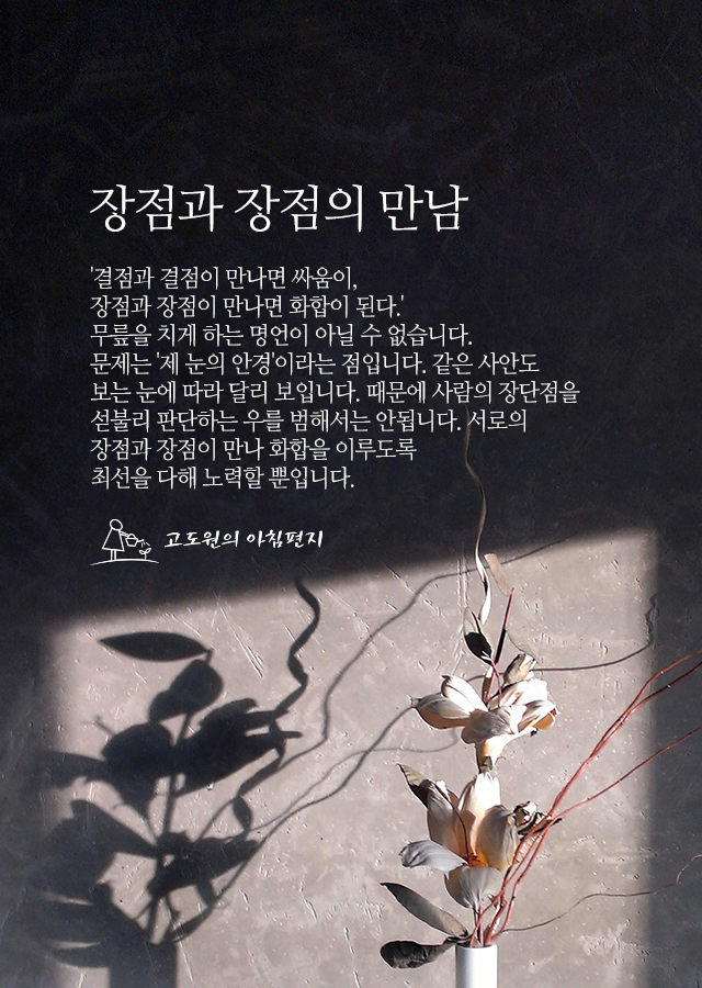 보는 눈에 따라 달리 보입니다. 때문에 사람의 장단점을