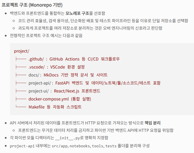 - 프로덕션 환경과 Jupyter 노트북/스크립트 기반 개발 간의 차이를 줄이기 위한 프로젝트 구조 및 자동화 방안도 적용