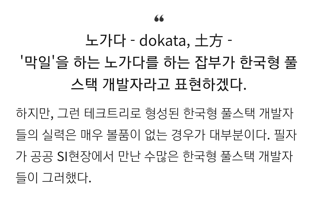 우리나라에서 풀스택의 의미는 혼자 다 하라는 뜻.
