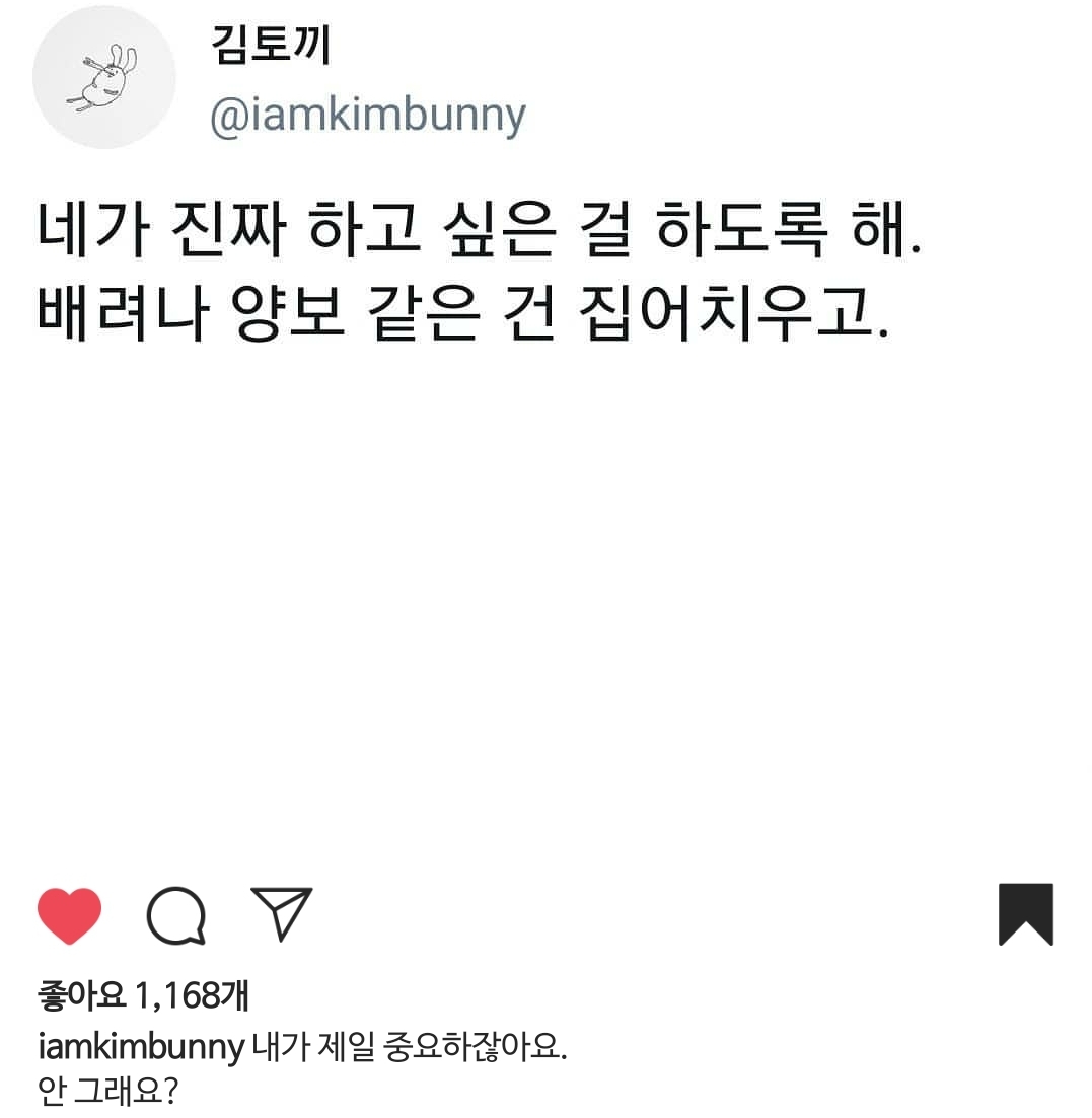 네가 진짜 하고 싶은 걸 하도록 해. 배려나 양보 같은 건 집어치우고.