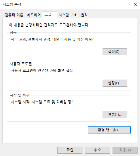 Windows 10 환경변수 설정