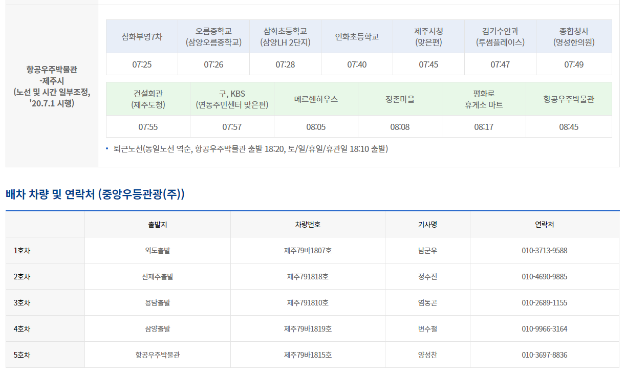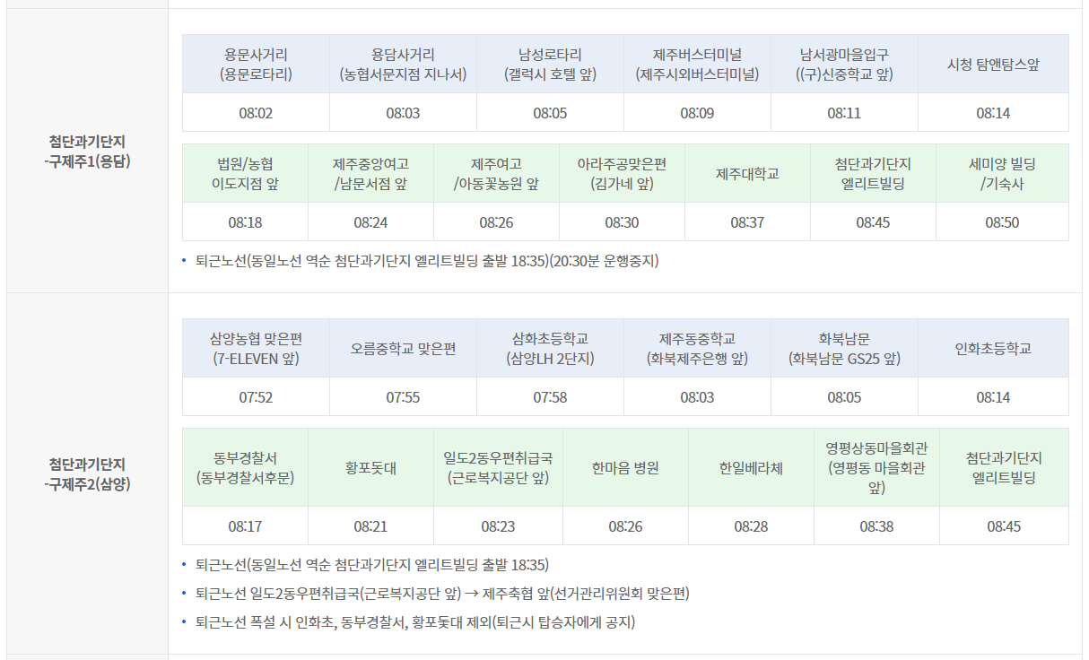 2021년 제주첨단과학기술단지 셔틀버스 운행정보