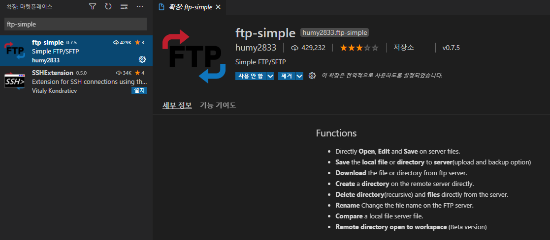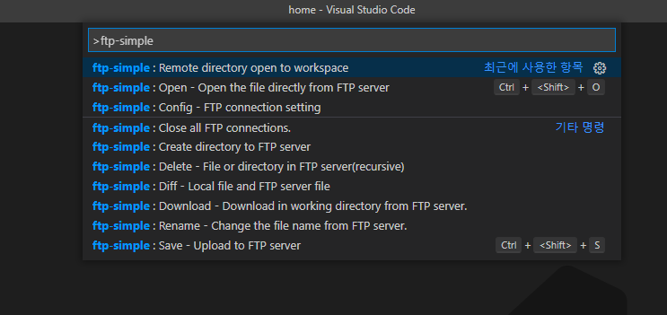 VSCode ftp 연결 확장프로그램 - ftp-simple