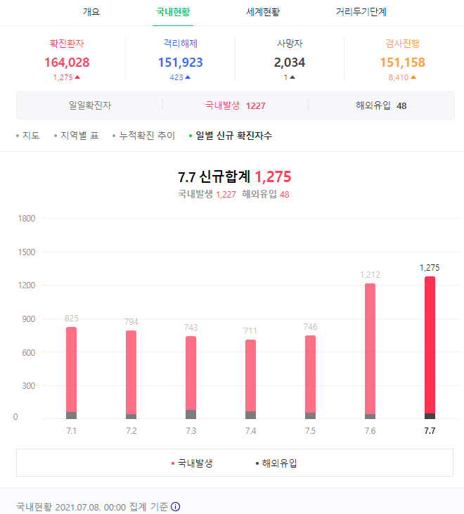 코로나19 일일확진자 상황, 20210708