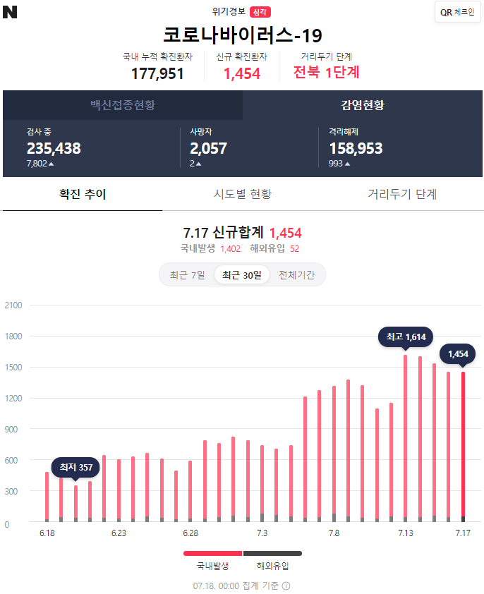 코로나19 일일확진자 상황, 20210719