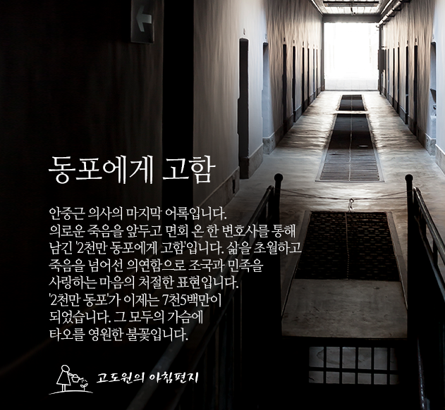 남긴 '2천만 동포에게 고함'입니다. 삶을 초월하고