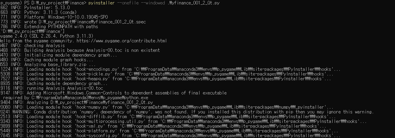 명령어를 실행하면 dist라는 폴더가 생성됩니다. 이 폴더 안에 stock_tracker.exe (또는 스크립트 이름에 따라 다른 이름일 수 있습니다) 파일이 생성됩니다. 이 파일이 바로 실행 가능한 파일입니다.
